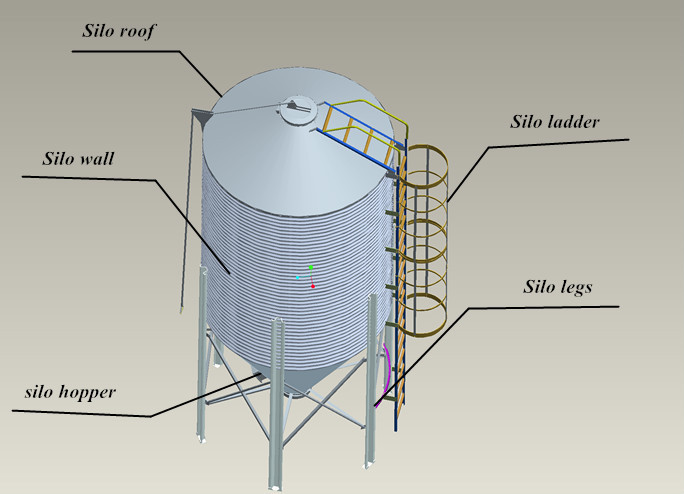 此型號鋼板倉廣泛應用于飼料加工廠、榨油廠、養殖場、個人糧食倉儲系統,采用表面275g/m2熱鍍鋅加工而成,使用壽命達25-30年。