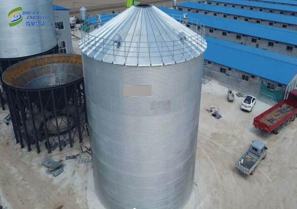 雪萊鋼板倉廠家安裝養殖場1500噸玉米倉