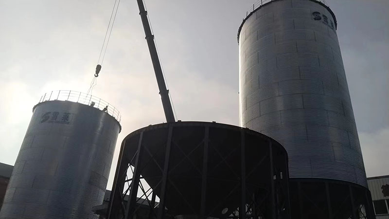 安徽六安飼料廠2臺600T鋼板倉項目安裝結束