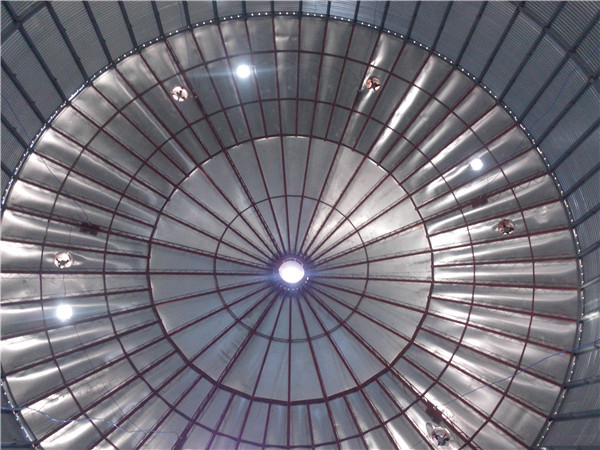 4、 便于實(shí)現(xiàn)機(jī)械化,鋼板倉均有配套設(shè)備,可以很方便的配上進(jìn)倉、出倉、掃倉、通風(fēng)、烘干、測溫、測滿等設(shè)備,達(dá)到安全儲糧的目的。